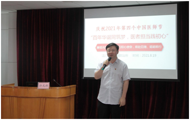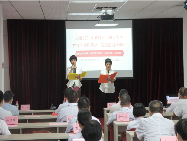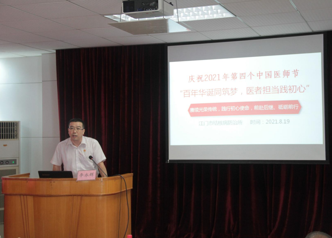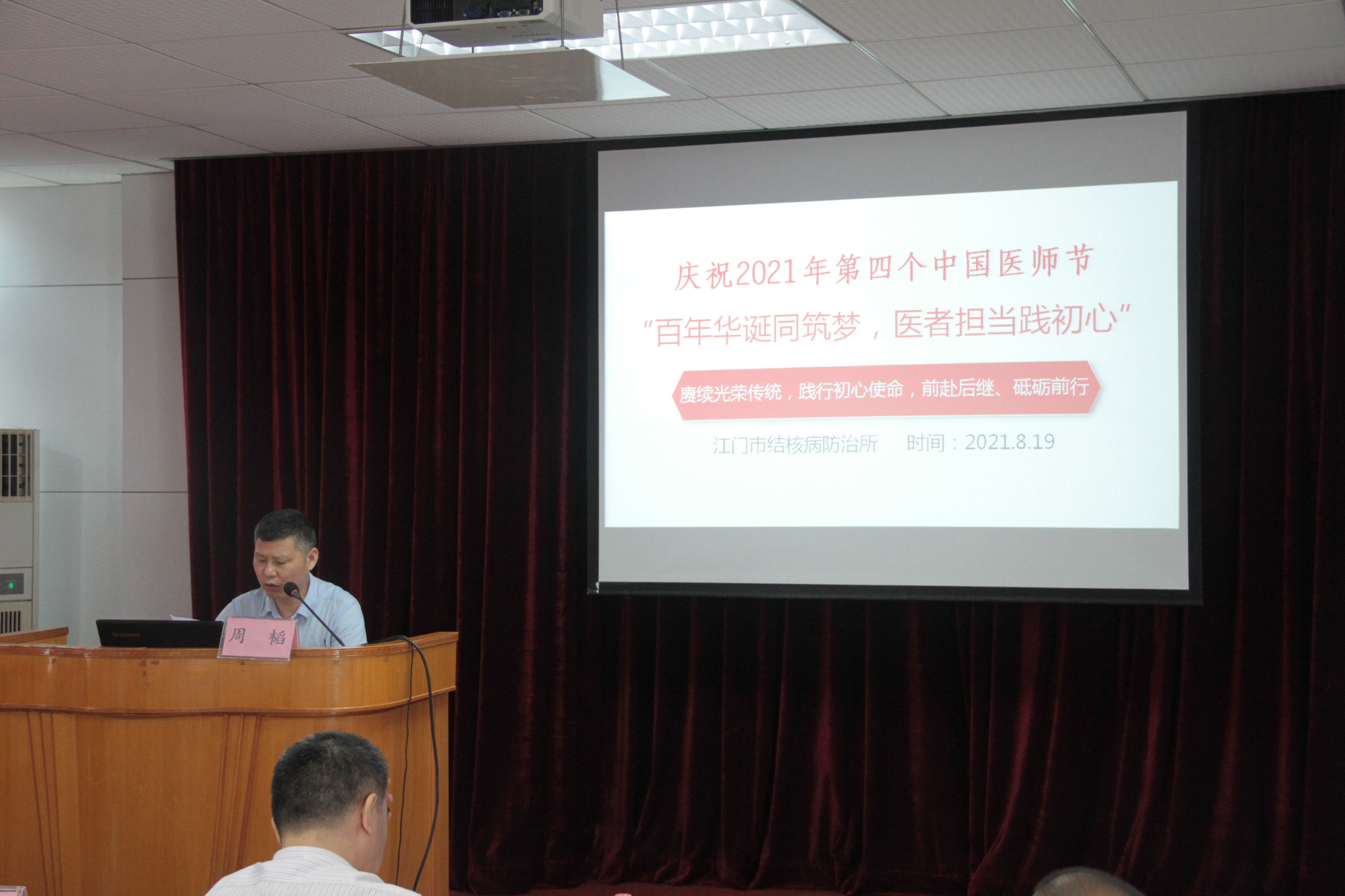 2021年8月19日是第四个中国医师节,恰逢中国共产党建党100周年,意义重大。经过半个多月的精心准备,于8月19日下午,江门市结核病防治所召开了以“百年华诞同筑梦,医者担当践初心”为主题的庆祝2021年“中国医师节”暨“优秀医师”表彰大会。