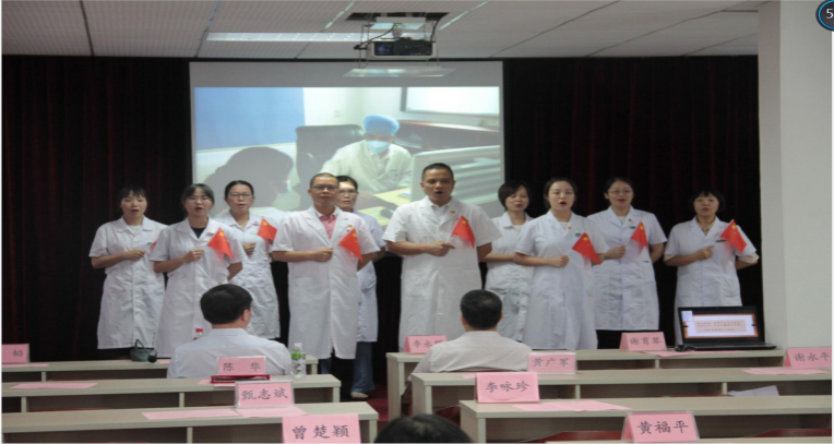 党支部书记、所长、主任医师许光辉带领全体医师重温中国医师宣言