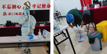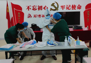 △学员在护士姐姐的指导下了完成洗手、戴脱口罩及穿脱防护服的全套操作
