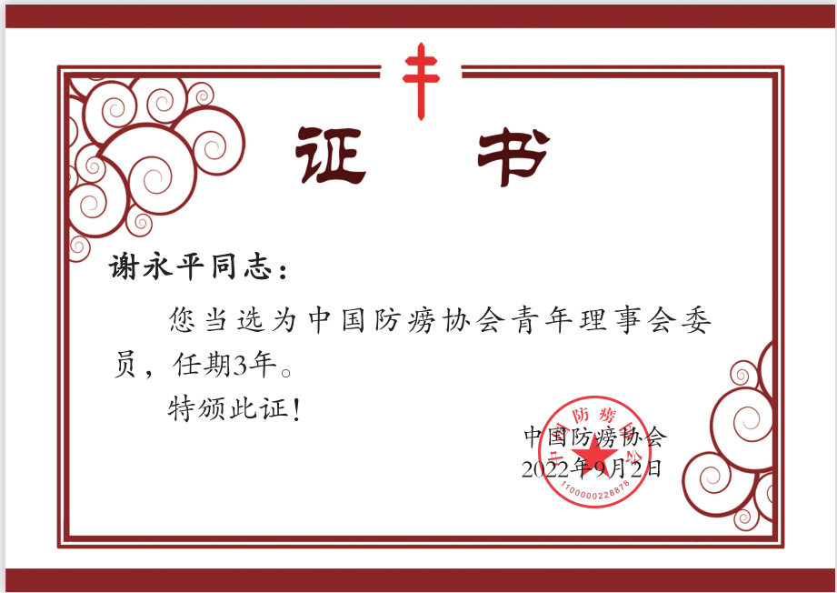 以上两位青年医师被聘任为国家级学会委员,不仅是他们个人在自身领域内的造诣和成就获得了国内业界的广泛认可,也是对本所结核病学科科研建设水平的高度肯定。期盼更多的青年结防人踊跃发挥“青年生力军”朝气蓬勃的力量,积极投身于五邑地区防痨事业!