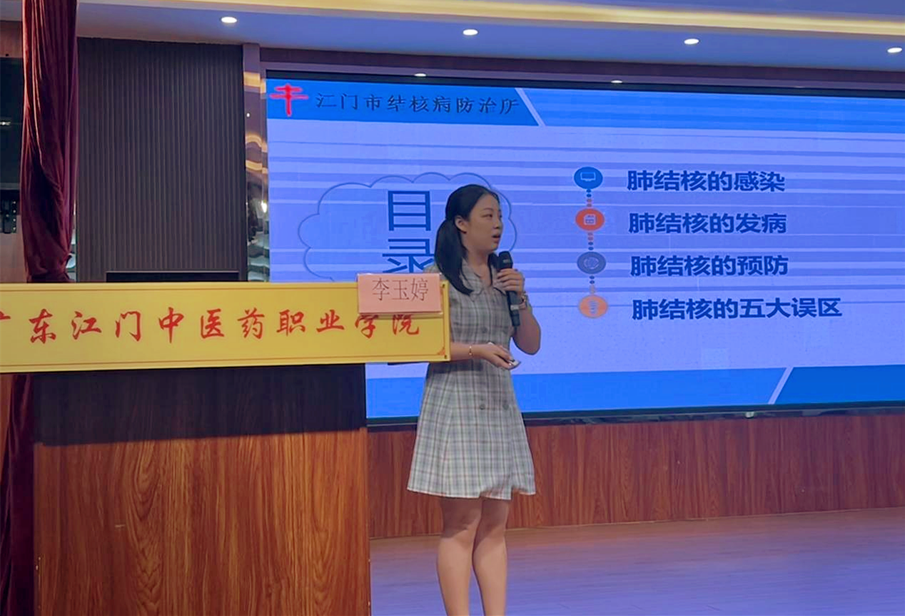 为进一步加强学校师生对结核病知识的了解,促进医院、学校共力合作,有效提高师生的防治结核病意识,保障学生在校园内健康快乐成长,广泛动员学校师生共同参与,创造无‘核’校园,9月27日下午,应广东江门中医药职业学院的邀请,我所结核病防治宣传团队一行5人到该校以“预防结核病 健康伴我行”为主题开展结核病防治科普宣传活动,门诊部主任肖继红、门诊部医生梁晋宁以及在校师生300余人参与了此次活动。