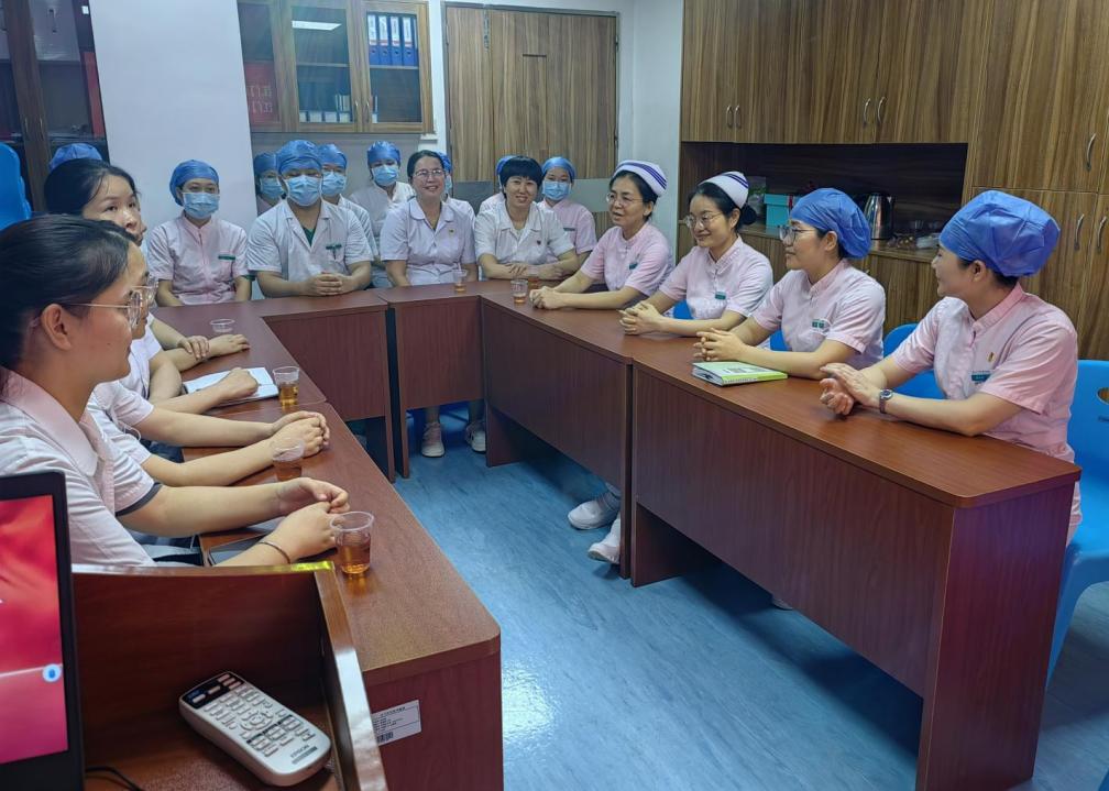 座谈会上,五邑中医院护理部主任梁秀兼对我们的到访表示热烈的欢迎,双方就党建工作开展情况、党建与业务融合的经验做法进行了分享,并就如何进一步发挥党建引领作用,推动医院高质量发展进行了深入探讨。随后梁主任又介绍了肺病科的基本情况,共同分享了各自有关肺炎、肺结核的护理经验和做法。