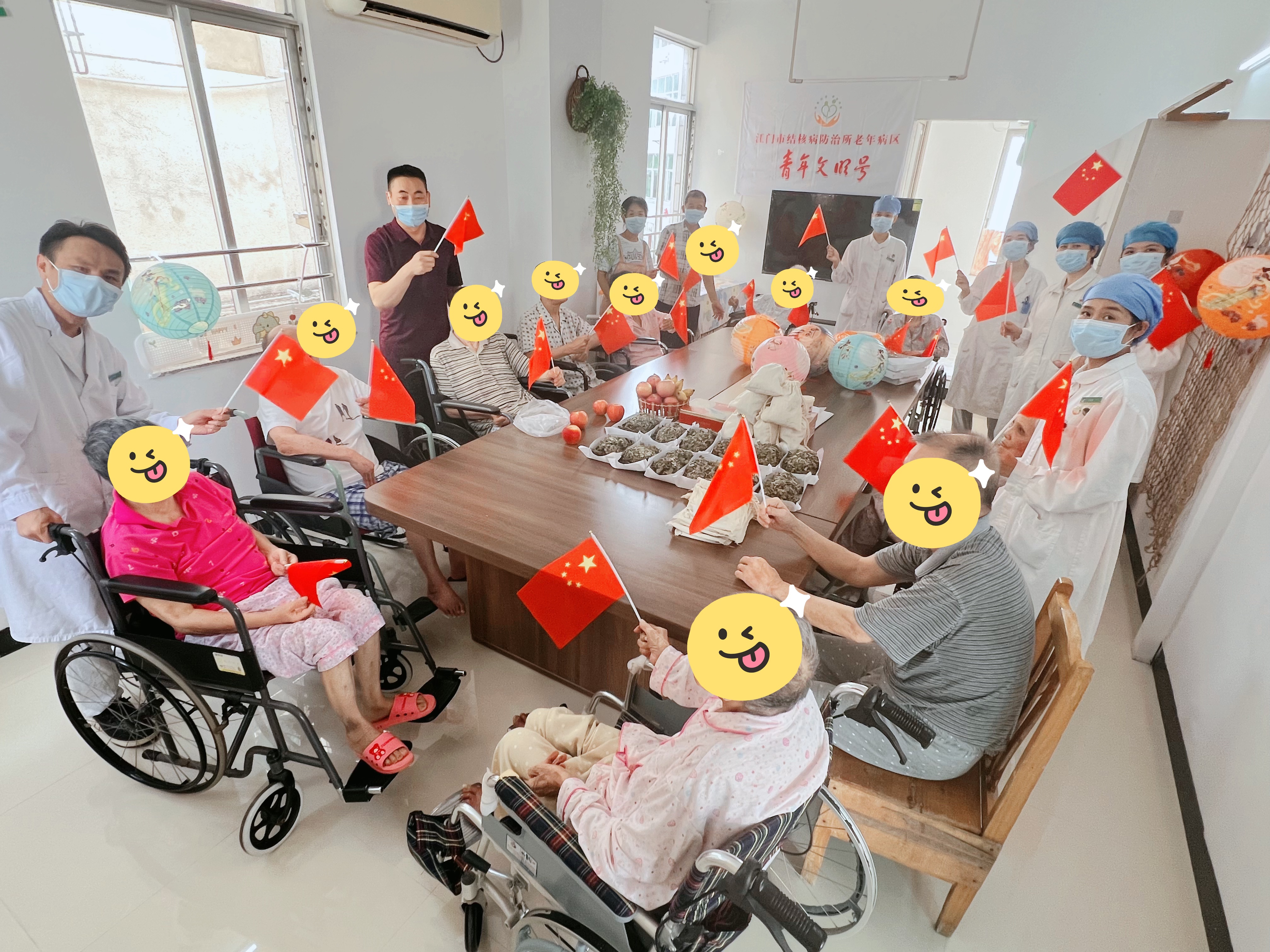 在金秋送爽、家国同庆的美好时节,江门市结核病防治所老年病区内暖意融融,笑语盈盈。为守护老年患者健康,传递双节关怀,病区青年医护团队精心策划了一场集知识性、趣味性于一体的特色活动,将佳节庆祝与健康宣教、蚊媒传染病防控巧妙结合,为老年患者送上一份“健康暖心礼”。