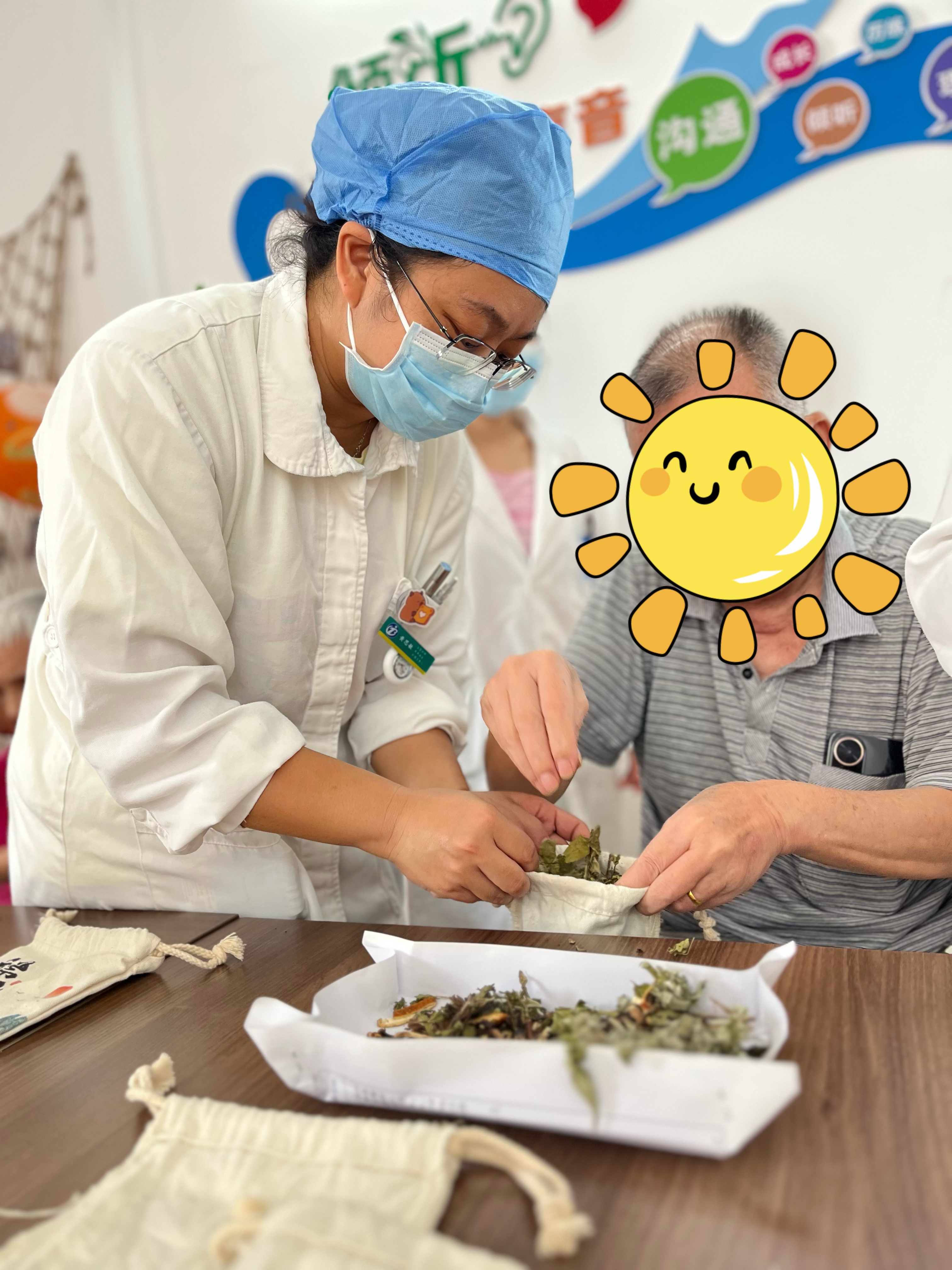 针对当前蚊媒传染病防控形势,青年号手们特意准备了内含艾叶、薄荷、藿香等驱蚊中药材的“中药香囊驱蚊包”,作为健康礼物赠予每位老年患者。在发放过程中,医师们详细讲解了香囊的驱蚊功效与使用方法,手把手教老人们正确佩戴。
