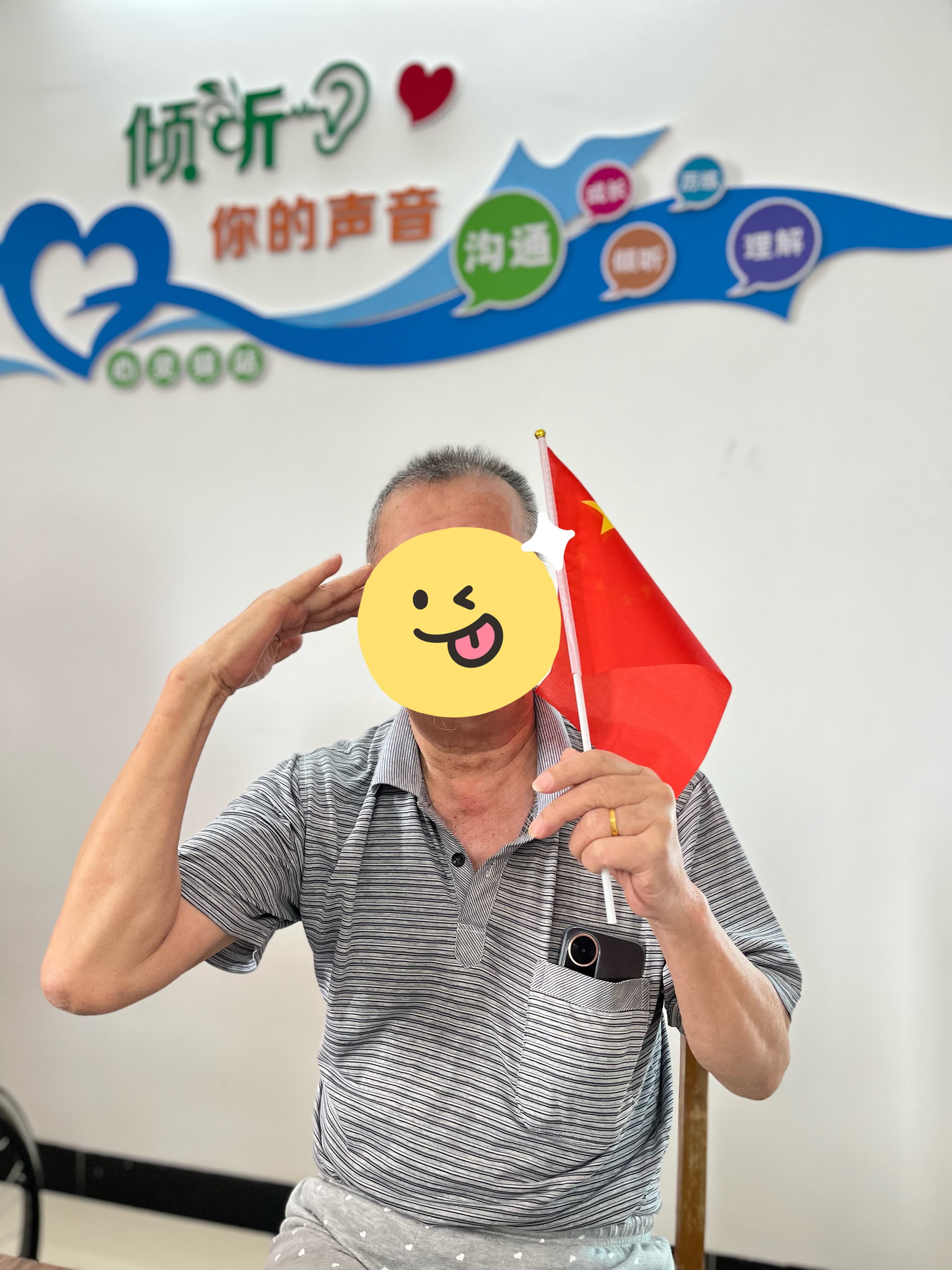 活动中还特设“致敬老兵”环节,向曾为国防事业奉献青春的老年退伍军人致以崇高敬意与节日问候。手持小国旗的老兵们笑容自豪,与青年号手们共同高呼“祝福祖国”,现场瞬间化作红色的海洋。这份兼具实用性与人文关怀的举措,让尊老敬老的温情与爱国报国的热忱在病区里交织升温。