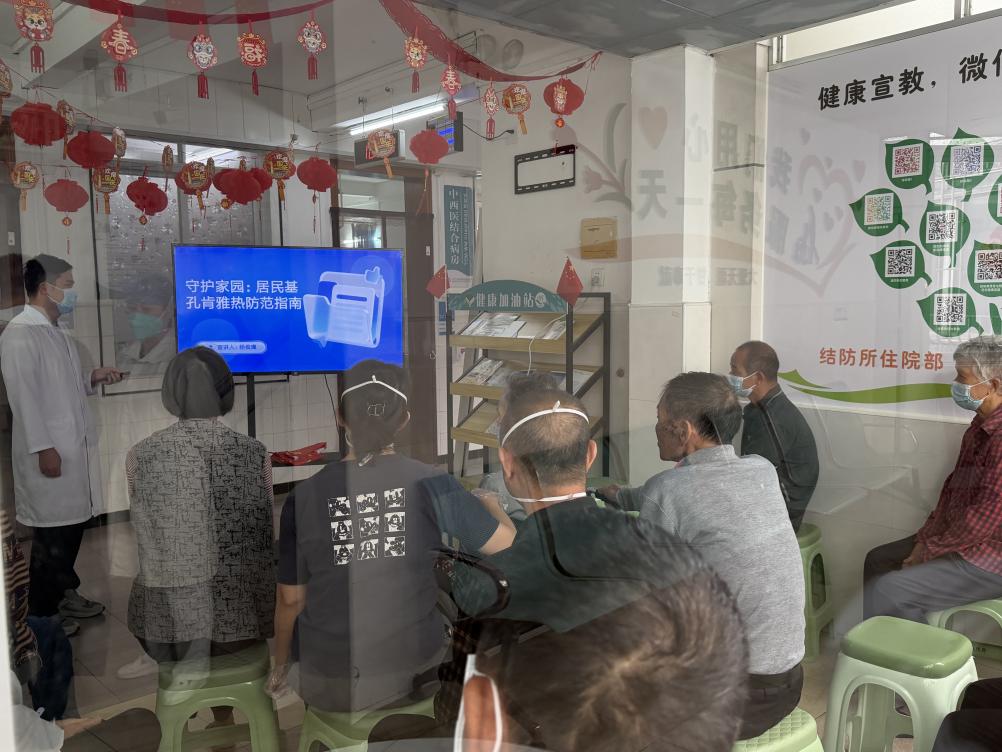 除了病房慰问,活动还特别组织身体状况允许的老年患者来到休闲活动区,参加了一场别开生面的健康知识宣讲。针对当前季节特点和老年人群体的健康需求,杨俊鹰医师用通俗易懂的语言,图文并茂地讲解了“基孔肯雅热”这一传染病的防控知识,详细介绍了其传播途径、主要症状以及科学的预防措施,提醒大家在日常生活中注意防蚊灭蚊,保持环境卫生,有效增强了老年患者对传染病的防范意识。