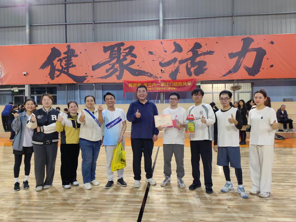 经过紧张而愉快的比拼,最终“肺力全开队”凭借出色的整体发挥夺得冠军,“锐防精技队”荣获亚军,“守护者联队”获得季军。比赛结束后,全体参赛职工及工作人员齐聚球场,在印有“健聚活力”及活动主题的横幅前合影留念,大家手持奖状、篮球,笑容洋溢,共同记录下这充满活力与温情的时刻。